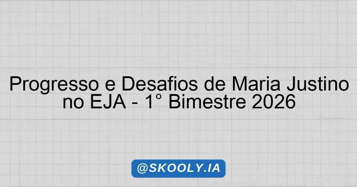 Este parecer refere-se ao primeiro bimestre de 2026 e tem como objetivo registrar o progresso e as dificuldades de Maria Justino Paz em seu processo de aprendizagem no contexto da Educação de Jovens e Adultos (EJA). É importante ressaltar que, apesar das dificuldades observadas, Maria demonstra um grande potencial e uma vontade clara de aprender e se desenvolver.