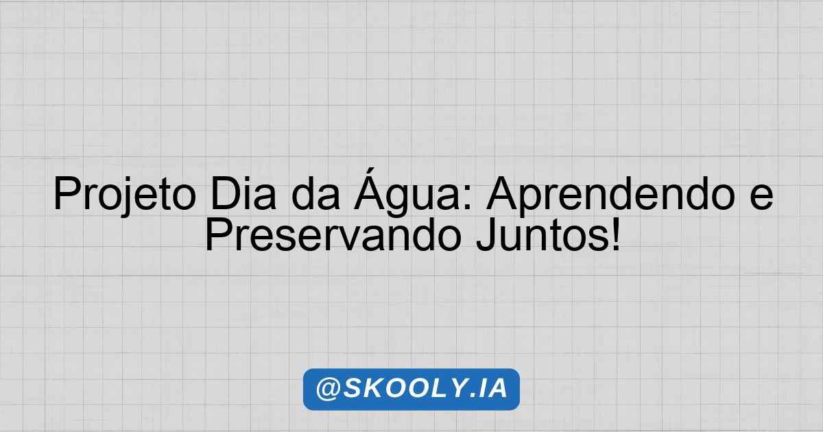 Projeto Dia da Água: Aprendendo e Preservando Juntos!