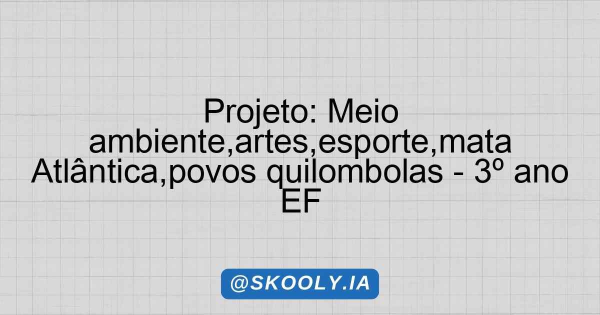 Projeto Interdisciplinar: Meio ambiente,artes,esporte,mata Atlântica,povos quilombolas