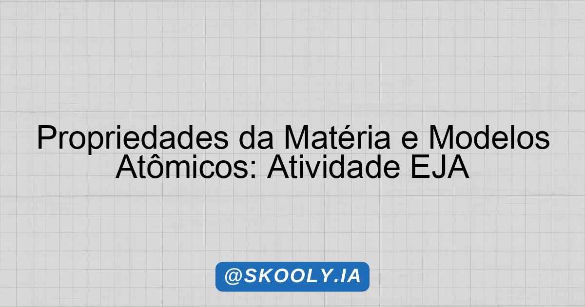 📚 Atividade EJA: PROPRIEDADES DA MÁTERIA E MODELOS ATOMICOS DE PREFERENCIA COM IMAGENS