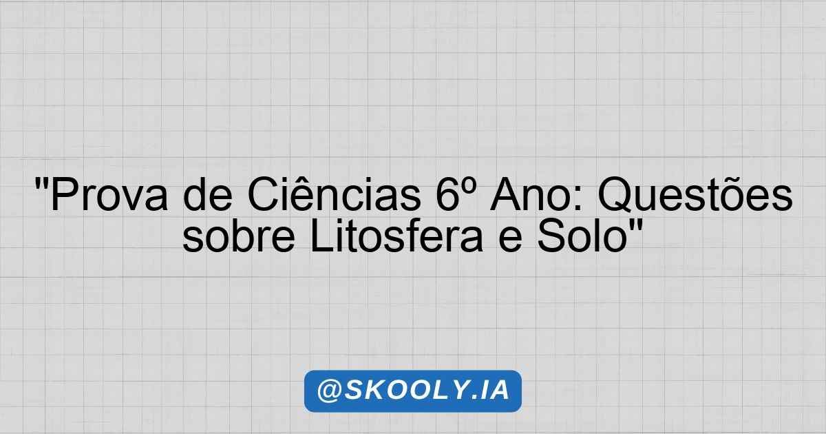 “Prova de Ciências 6º Ano: Questões sobre Litosfera e Solo”