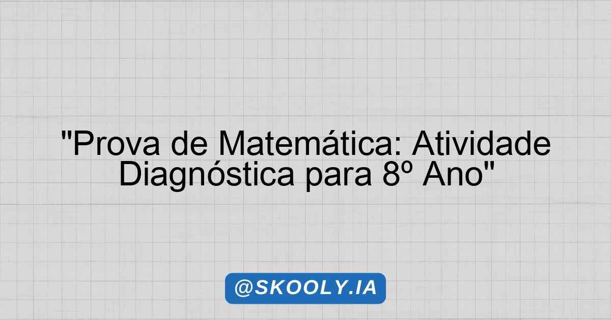 “Prova de Matemática: Atividade Diagnóstica para 8º Ano”