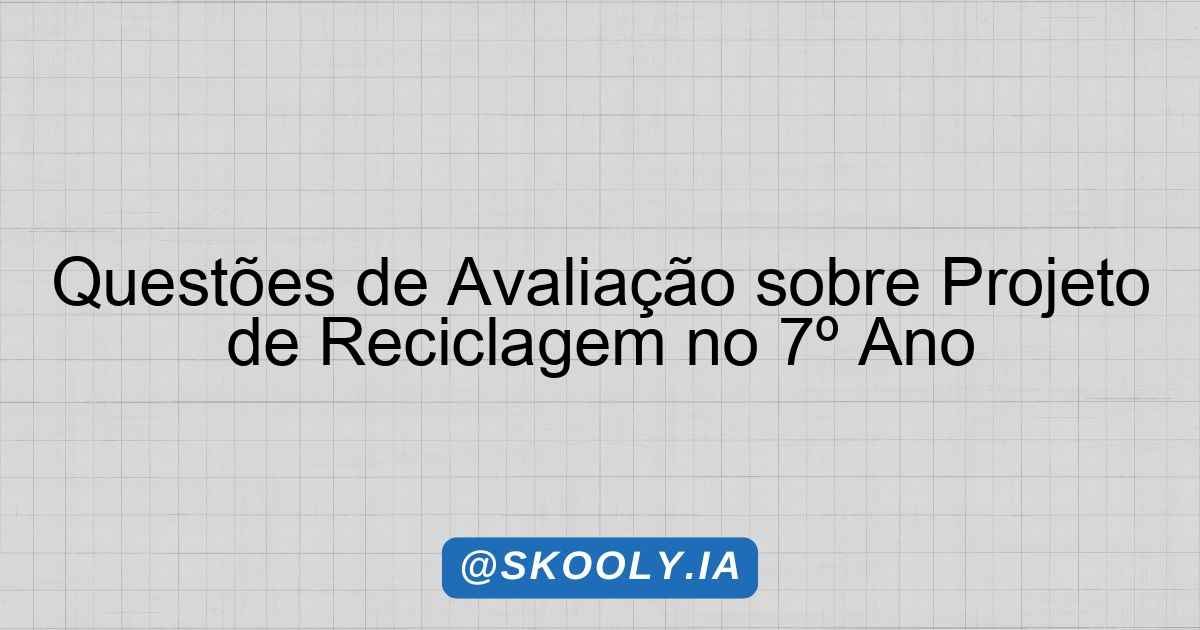 Questões sobre: Projeto de reciclagem mobiliza estudantes em escola pública