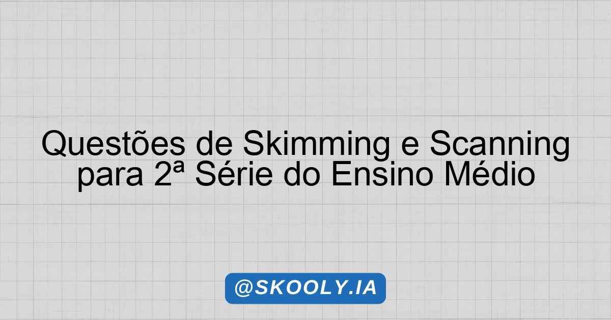 Objetivos da avaliação: Avaliar o conhecimento dos alunos sobre as estratégias de leitura skimming e scanning, além da interpretação do texto fornecido.