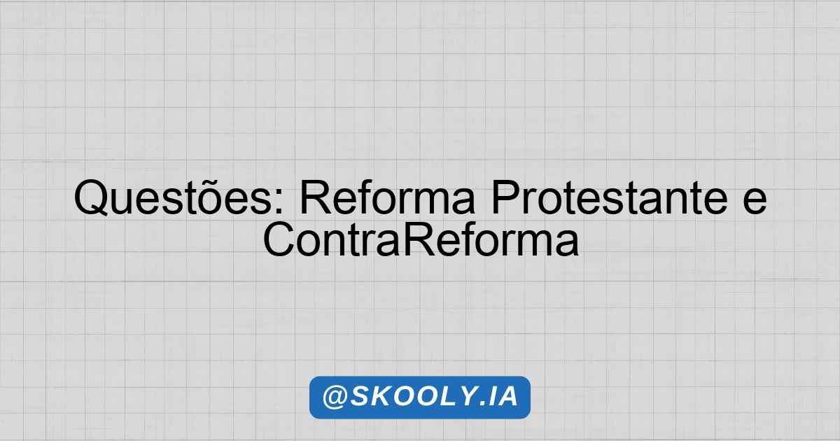 Questões sobre: Reforma Protestante e ContraReforma