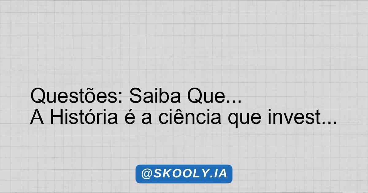 Questões: Saiba Que… A História é a ciência que invest…