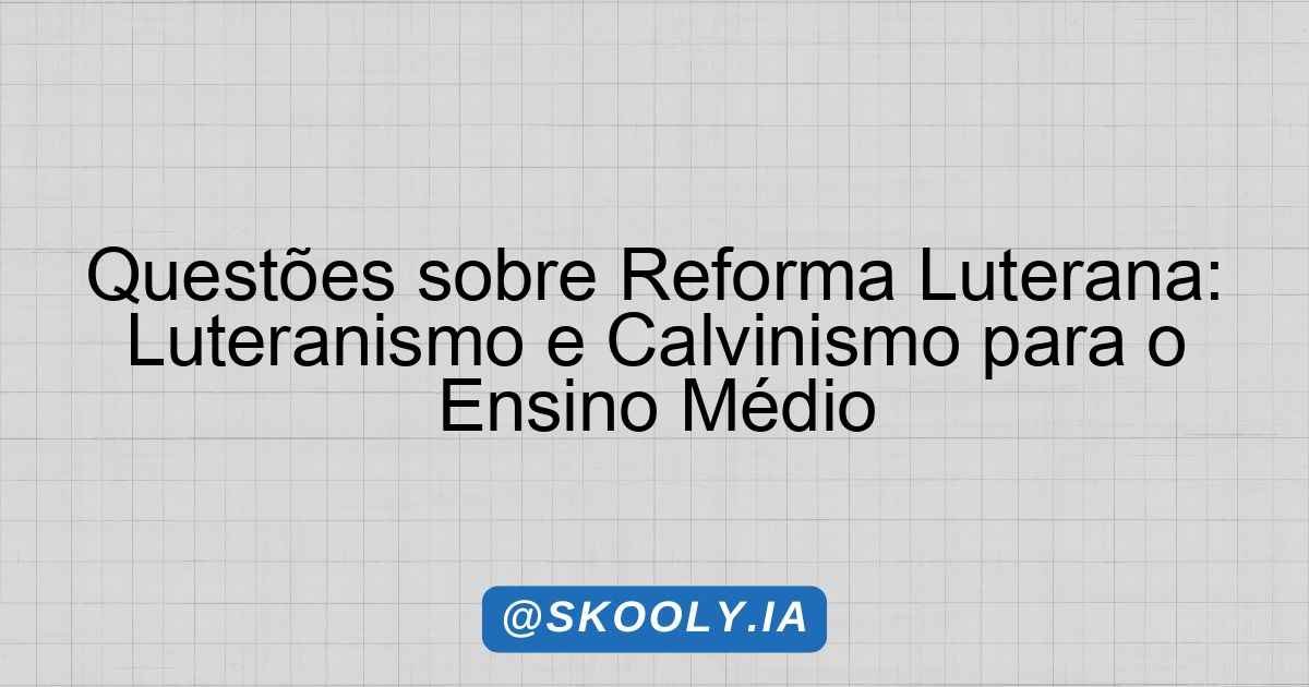 Questões sobre Reforma Luterana: Luteranismo e Calvinismo para o Ensino Médio