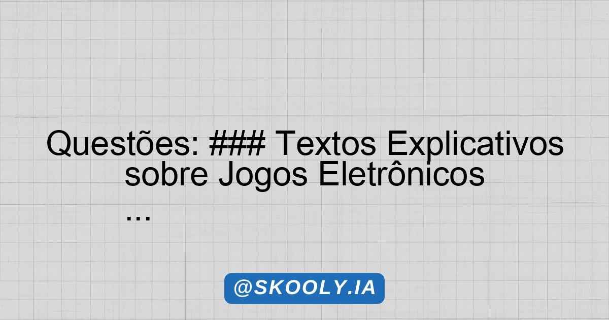 Questões: ### Textos Explicativos sobre Jogos Eletrônicos …