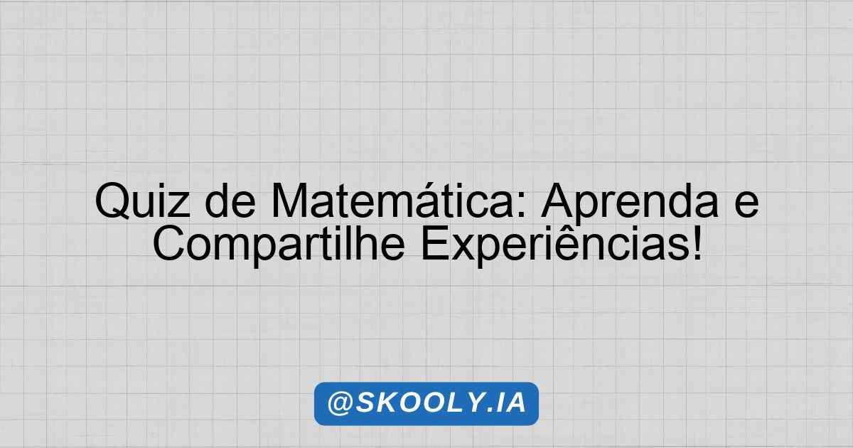 Nesta atividade, vamos realizar um quiz que nos ajudará a conhecer melhor uns aos outros e a entender como a matemática está presente em nosso cotidiano. A importância desse quiz vai além de avaliar conhecimentos prévios; ele servirá como uma ferramenta para reconhecer as experiências de vida de cada um e contextualizar o aprendizado matemático em situações reais.