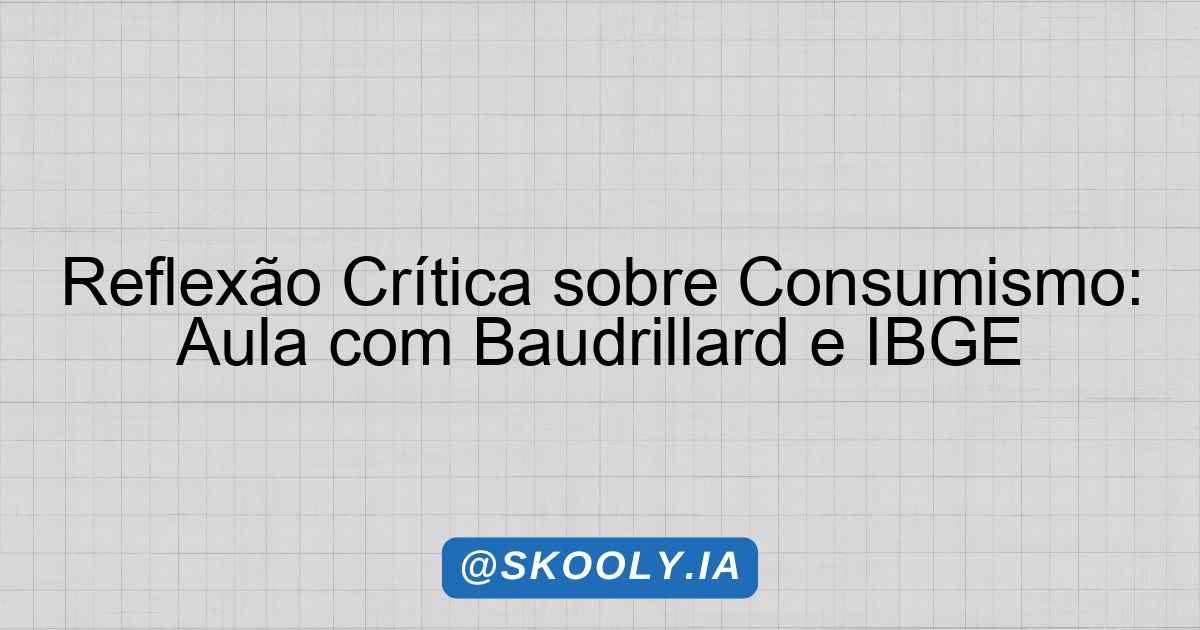 Desenvolver a capacidade crítica dos alunos em relação ao consumismo e suas implicações sociais, utilizando a obra de Jean Baudrillard e dados do IBGE, com foco nas desigualdades sociais no Brasil.
