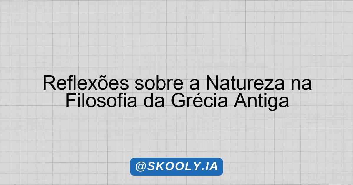 Fomentar a compreensão crítica sobre o estudo da natureza na Grécia Antiga e suas contribuições para o pensamento filosófico e científico.