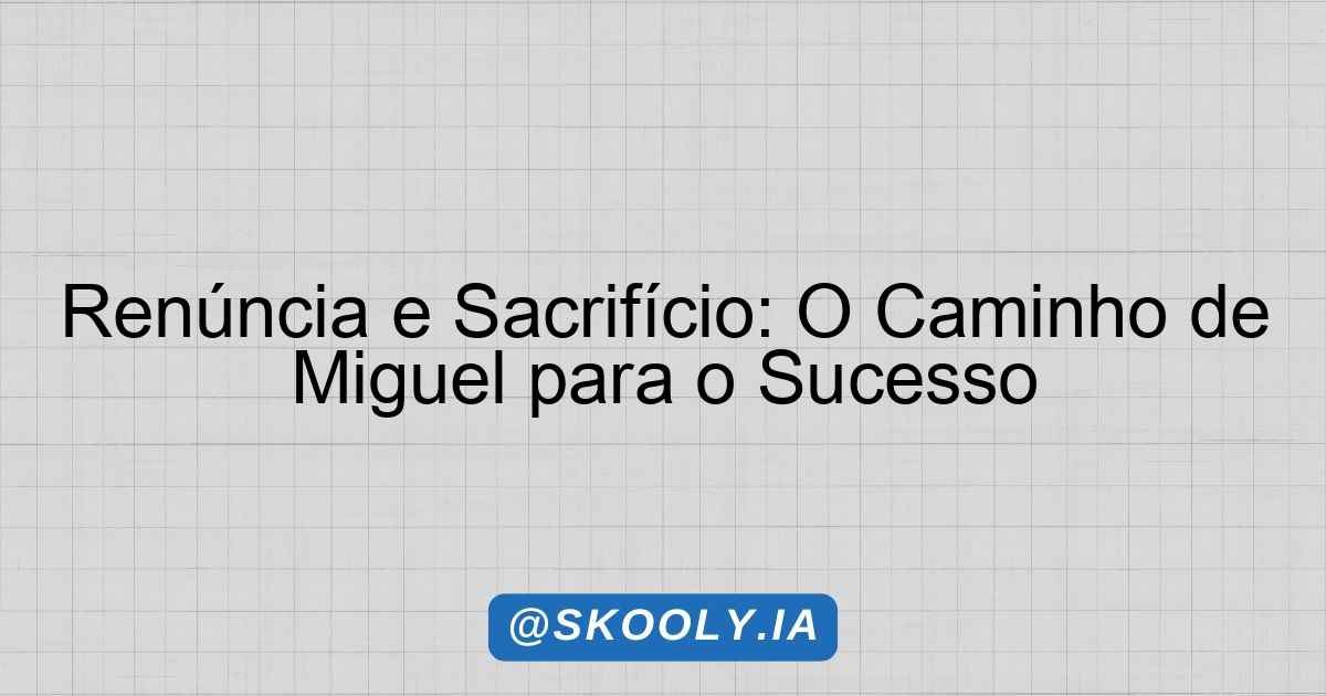 A busca por objetivos muitas vezes exige renúncias e sacrifícios. Este é um tema recorrente em diversas histórias, tanto na literatura quanto na vida real. O personagem principal de nossa narrativa, Miguel, é um estudante do 9º ano que sonha em se tornar um grande músico.