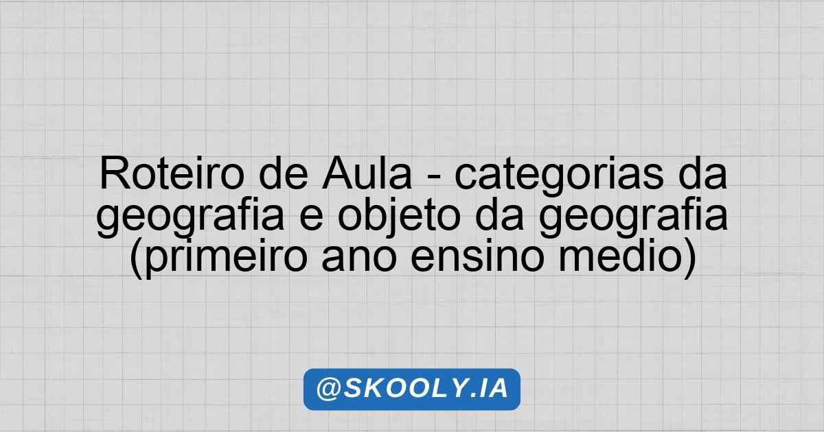 Roteiro de Aula – categorias da geografia e objeto da geografia (primeiro ano ensino medio)
