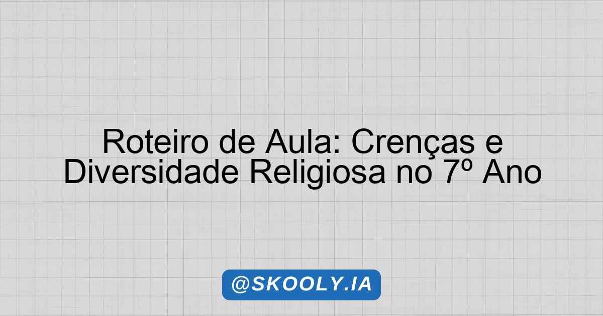 Roteiro de Aula: 7º Ano – Ensino Religioso