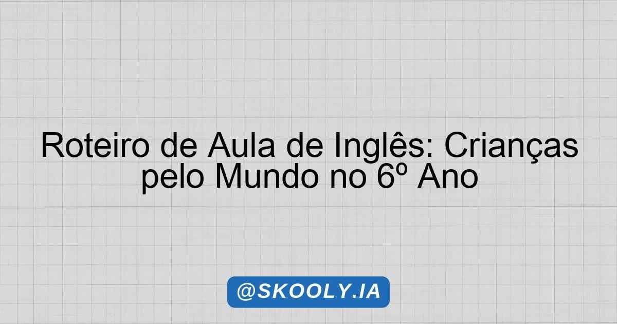 Roteiro de Aula – 6º Ano – Disciplina: Inglês