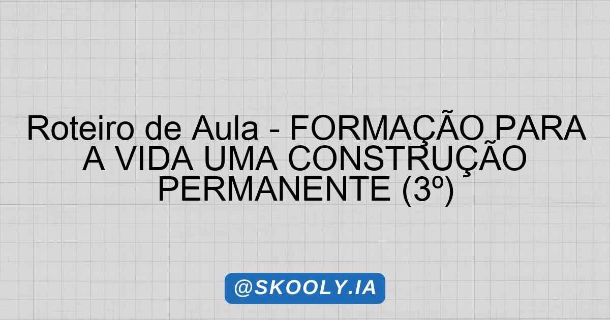 Roteiro de Aula – FORMAÇÃO PARA A VIDA UMA CONSTRUÇÃO PERMANENTE (3º)