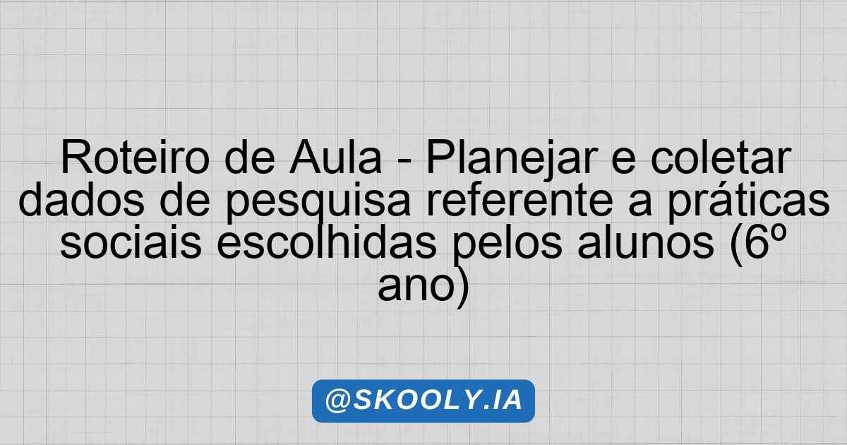 Roteiro de Aula – Planejar e coletar dados de pesquisa referente a práticas sociais escolhidas pelos alunos (6º ano)