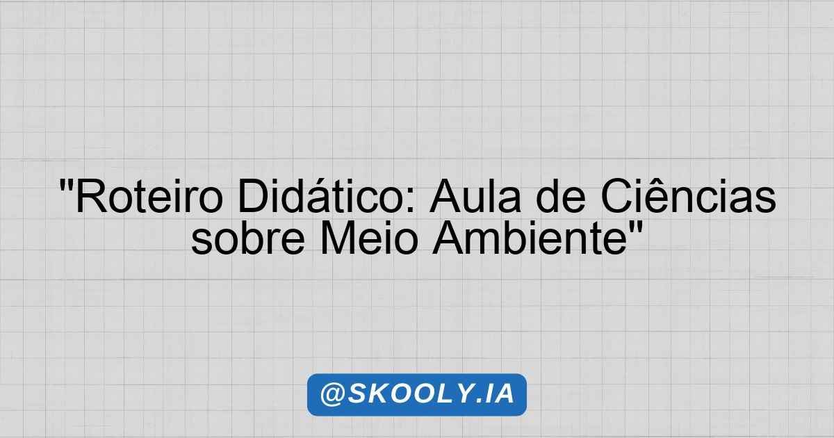 Roteiro Didático de Aula de Ciências – Tema: Meio Ambiente