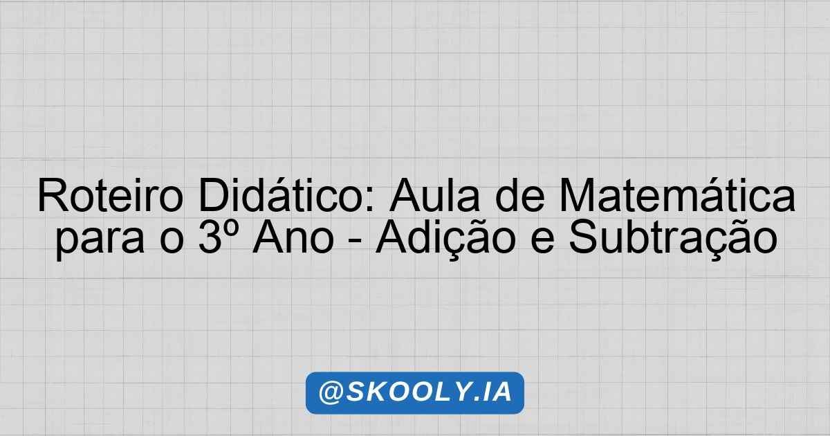 Roteiro Didático: Aula de Matemática para o 3º Ano – Adição e Subtração