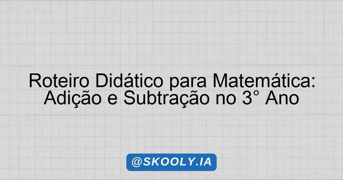 Roteiro Didático para Matemática: Adição e Subtração no 3° Ano