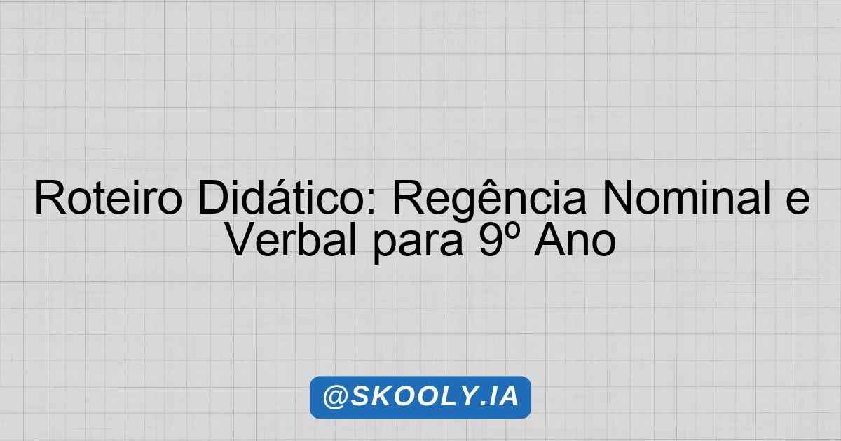 Roteiro Didático: Regência Nominal e Verbal para 9º Ano