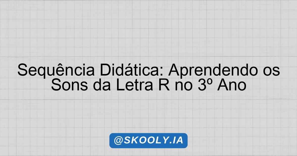A sequência didática visa desenvolver a consciência fonológica dos alunos, promovendo a identificação e a produção de sons representados pela letra R em diferentes contextos. Através de atividades lúdicas e práticas, os alunos poderão entender a relação entre grafemas e fonemas, aprimorando suas habilidades de leitura e escrita.
