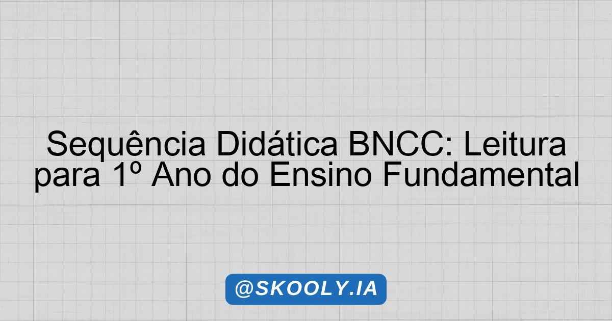Sequência Didática BNCC: Leitura para 1º Ano do Ensino Fundamental