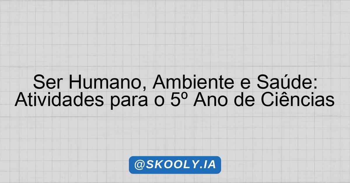 Ser Humano, Ambiente e Saúde: Atividades para o 5º Ano de Ciências