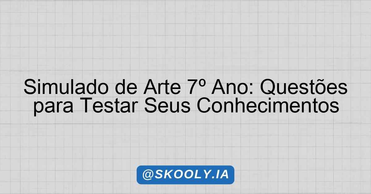 Este simulado está estruturado para atender ao conteúdo programático do 7º ano, focando em Arte e suas diversas expressões e técnicas, com questões que promovem a interpretação e análise crítica.