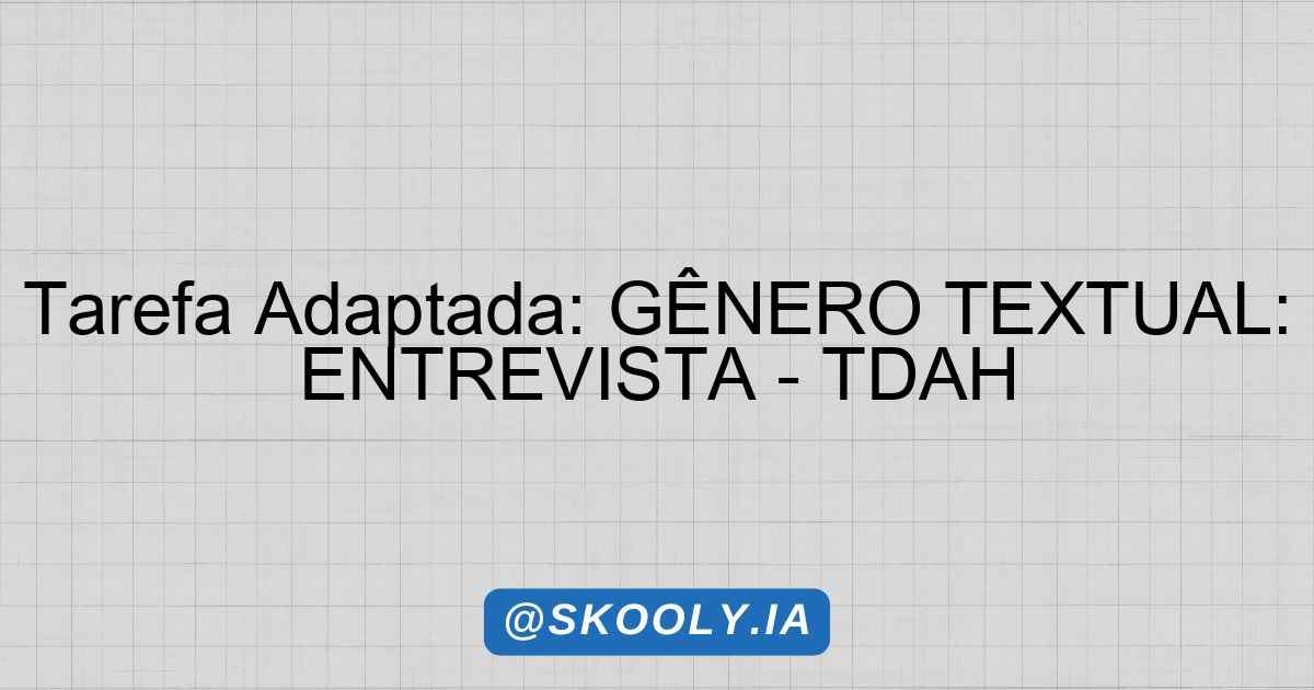 🌈 Tarefa Adaptada: GÊNERO TEXTUAL: ENTREVISTA