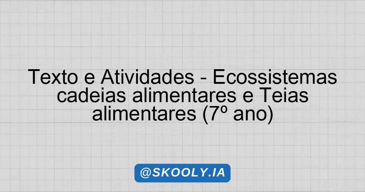 Texto e Atividades – Ecossistemas cadeias alimentares e Teias alimentares (7º ano)