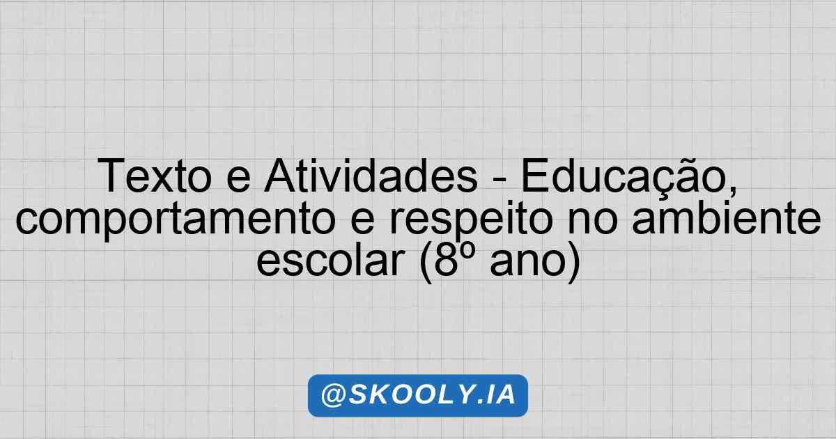 Texto e Atividades – Educação, comportamento e respeito no ambiente escolar (8º ano)