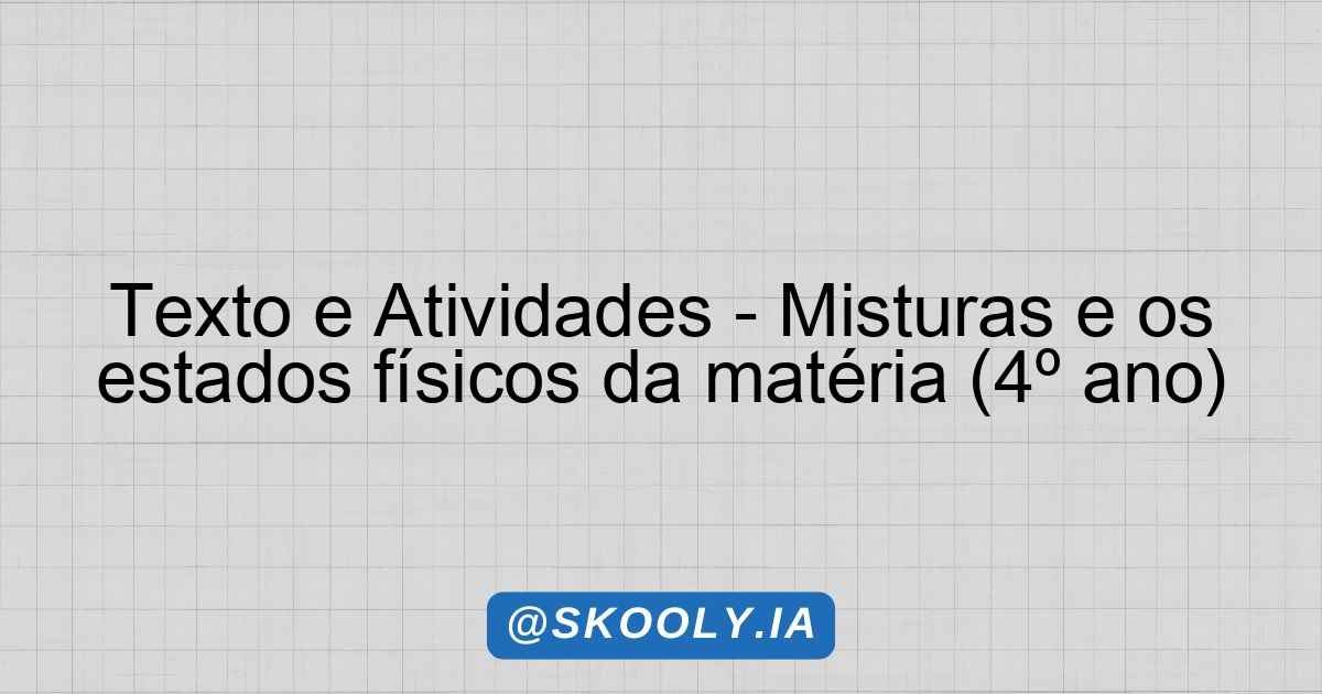 Texto e Atividades – Misturas e os estados físicos da matéria (4º ano)