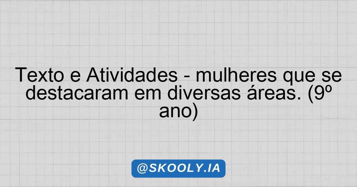 Texto e Atividades – mulheres que se destacaram em diversas áreas. (9º ano)