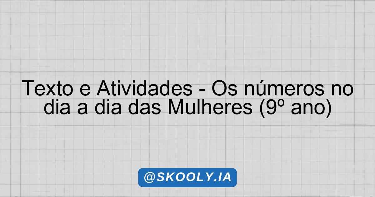 Texto e Atividades – Os números no dia a dia das Mulheres (9º ano)