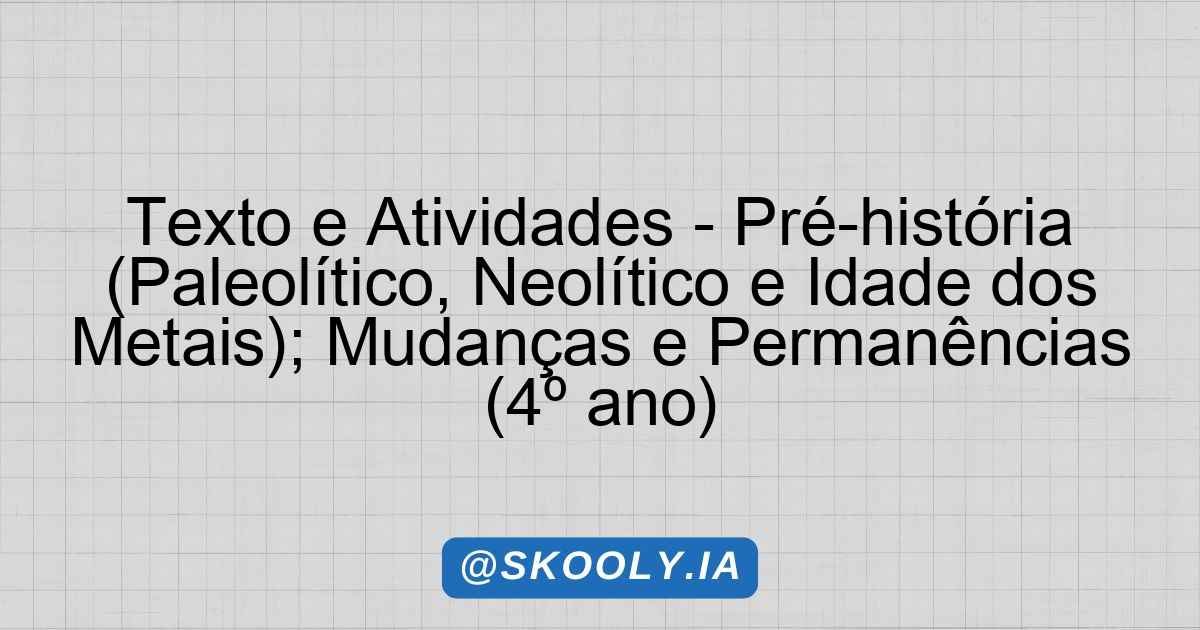 Tema: Pré-história (Paleolítico, Neolítico e Idade dos Metais); Mudanças e Permanências