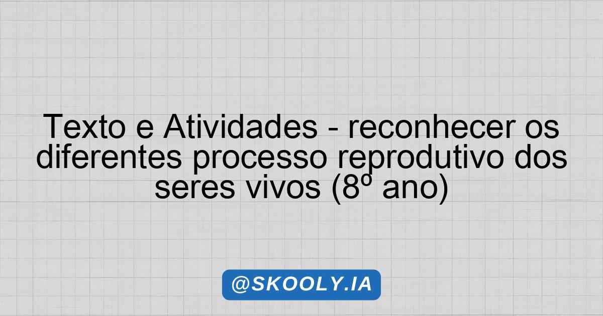 Tema: reconhecer os diferentes processo reprodutivo dos seres vivos