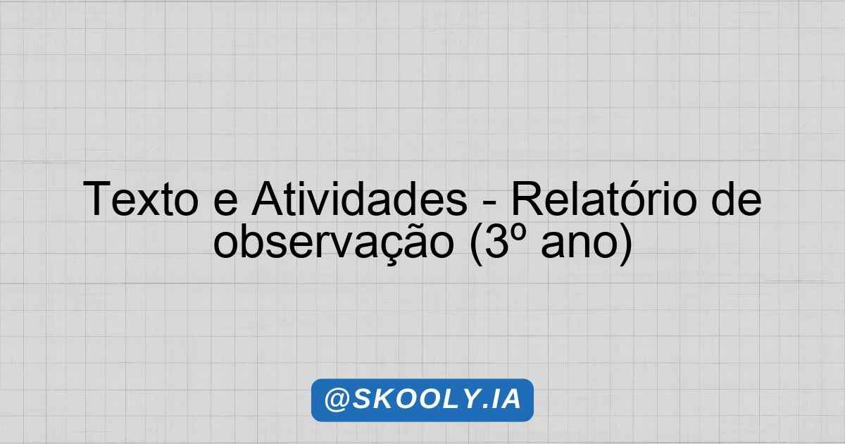 Nesta postagem vamos disponibilizar um texto e atividades para trabalhar com alunos do 3º ano na disciplina Língua Portuguesa.