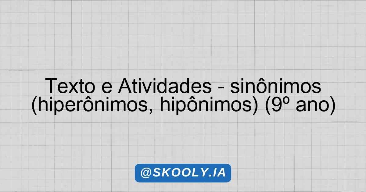 Texto e Atividades – sinônimos (hiperônimos, hipônimos) (9º ano)