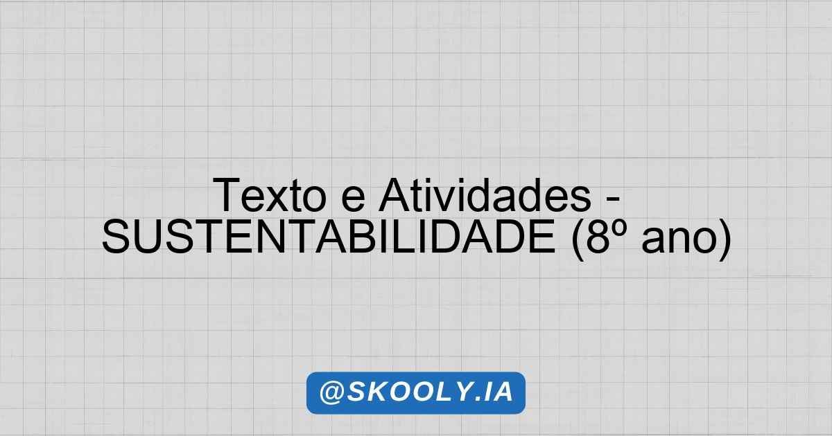 Estas atividades devem ajudar a consolidar o aprendizado sobre a importância da sustentabilidade de uma maneira leve e divertida, promovendo uma reflexão crítica entre os alunos!