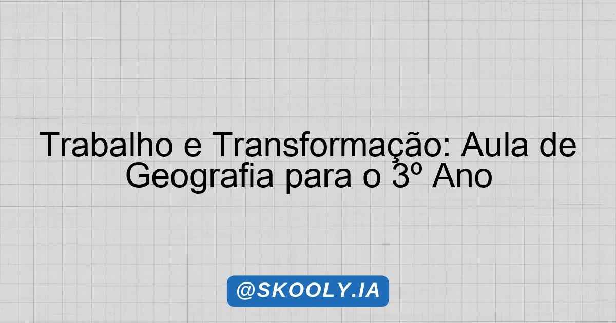 Este plano de aula tem como foco o tema “O trabalho e a transformação do município”, proporcionando uma reflexão sobre como as atividades trabalhistas moldam e alteram a infraestrutura e o cotidiano de nossa comunidade. A partir de uma abordagem geográfica, os alunos do 3º ano do Ensino Fundamental 1 poderão compreender de que maneira o trabalho e suas transformações impactam diretamente na vida dos cidadãos e na configuração do município onde vivem. A proposta educacional está alinhada às orientações da BNCC, promovendo uma aprendizagem significativa e contextualizada.
