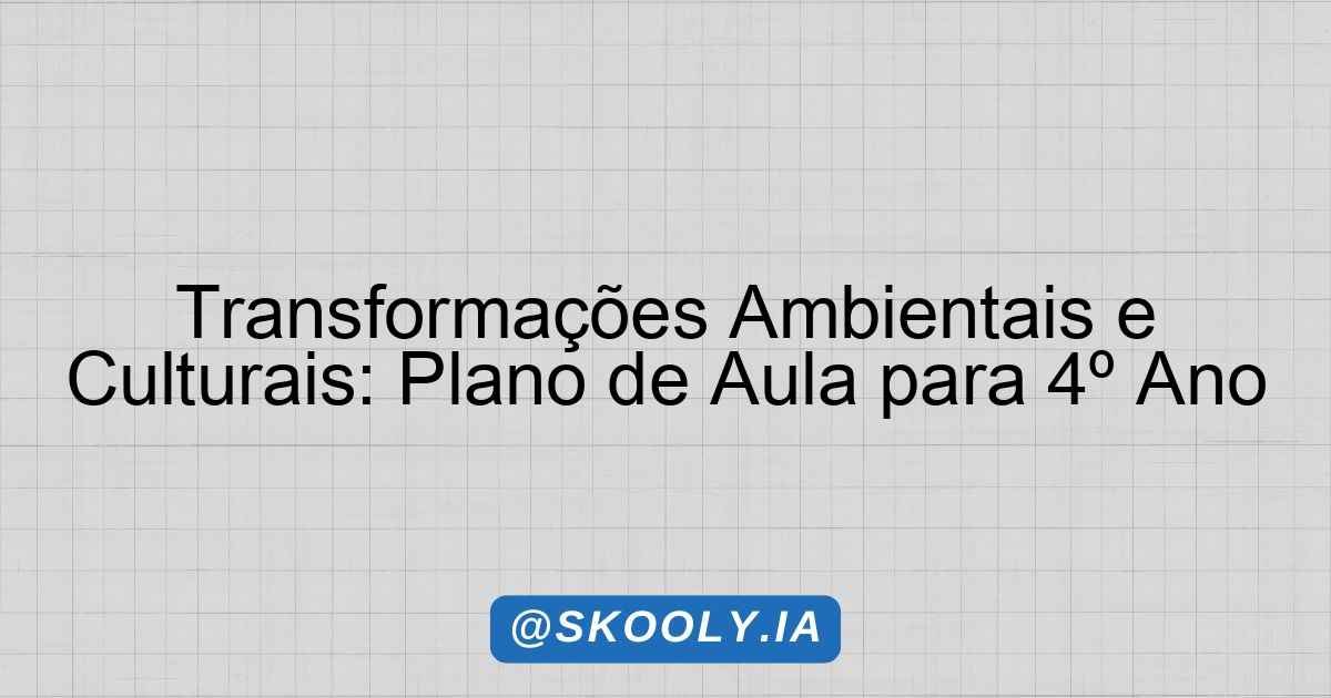 Esta é uma proposta de plano de aula que visa proporcionar aos alunos do 4º ano do Ensino Fundamental uma compreensão profunda sobre as transformações ambientais e culturais ao longo da história. O foco está em conectar o conhecimento sobre história com a realidade do dia a dia dos alunos, promovendo a reflexão crítica sobre o impacto das ações humanas no meio ambiente e na sociedade. O ensino será centrado nas habilidades estabelecidas pela Base Nacional Comum Curricular (BNCC), enfatizando a importância de entender a história como um processo dinâmico e em constante transformação.