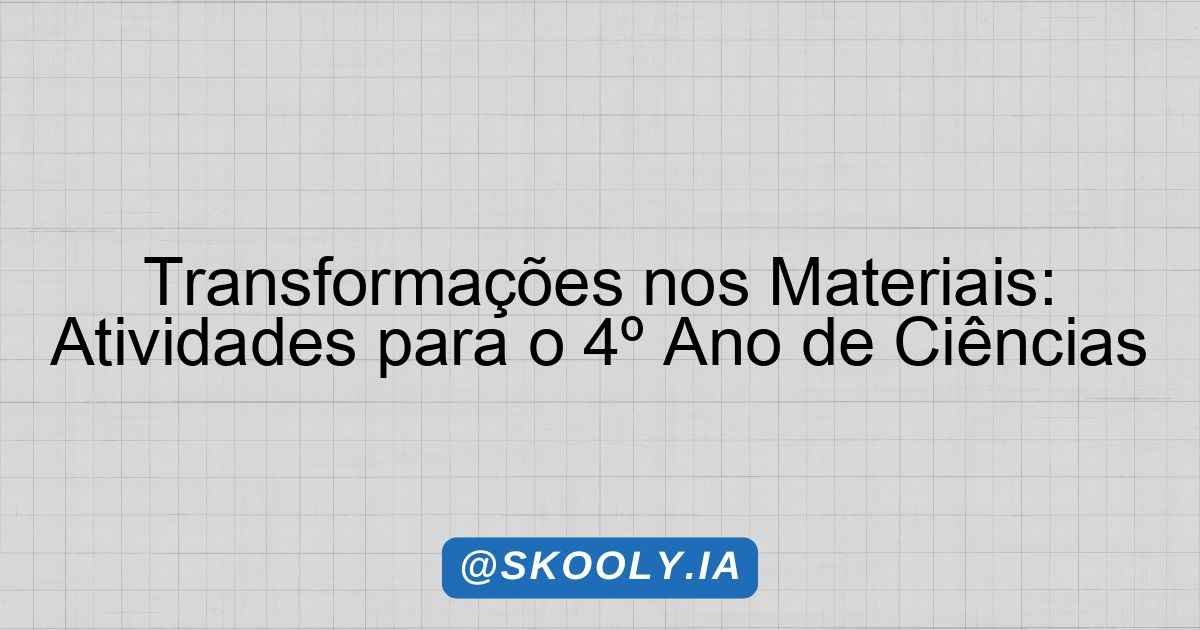 No estudo das Ciências, aprendemos que os materiais ao nosso redor podem passar por diversas transformações. Essas transformações podem ser observadas em nosso dia a dia e compreendê-las é fundamental para entender o mundo em que vivemos.