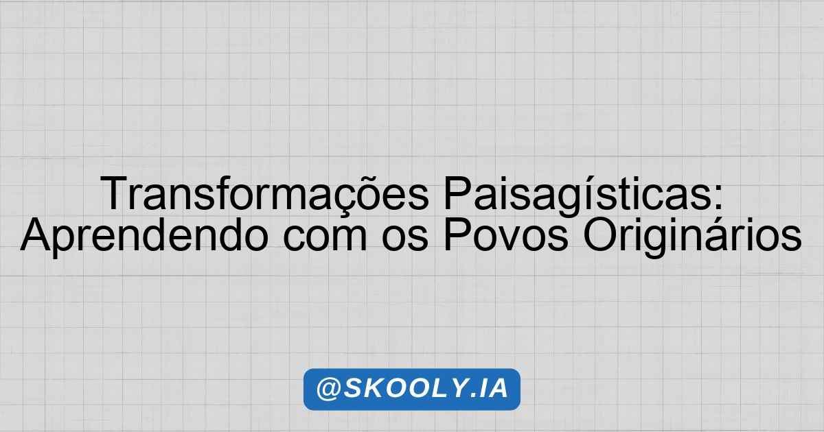 Transformações Paisagísticas: Aprendendo com os Povos Originários